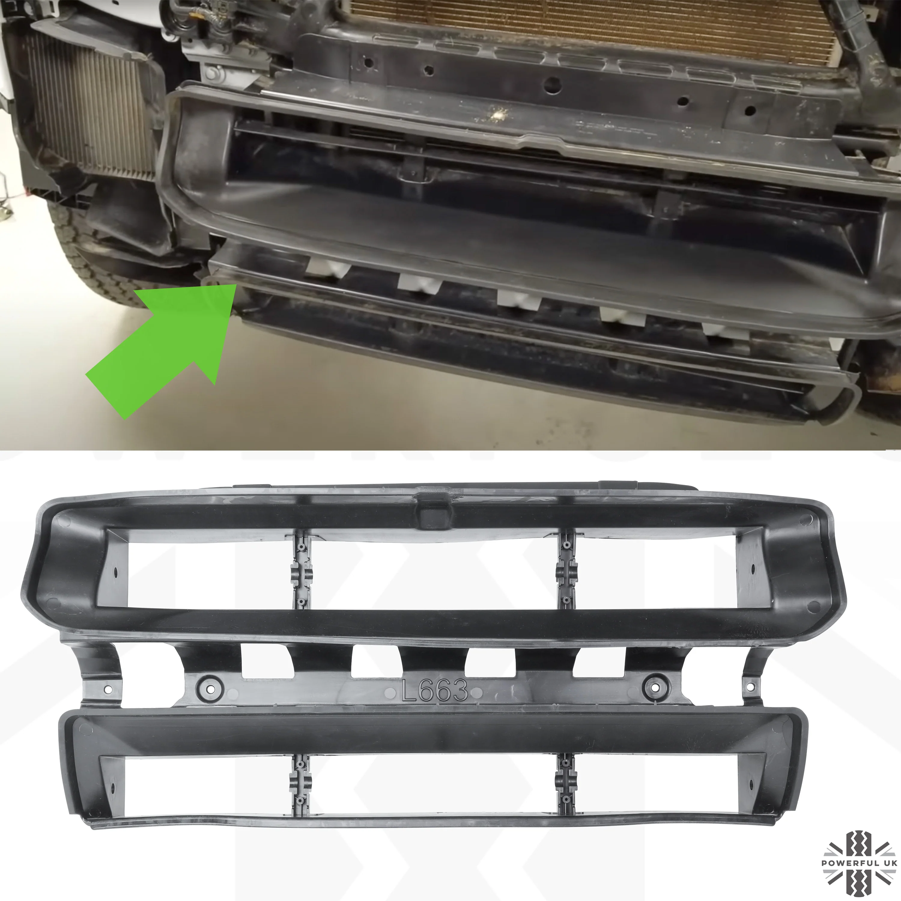 This is a replacement air deflector for the Land Rover Defender L663.
